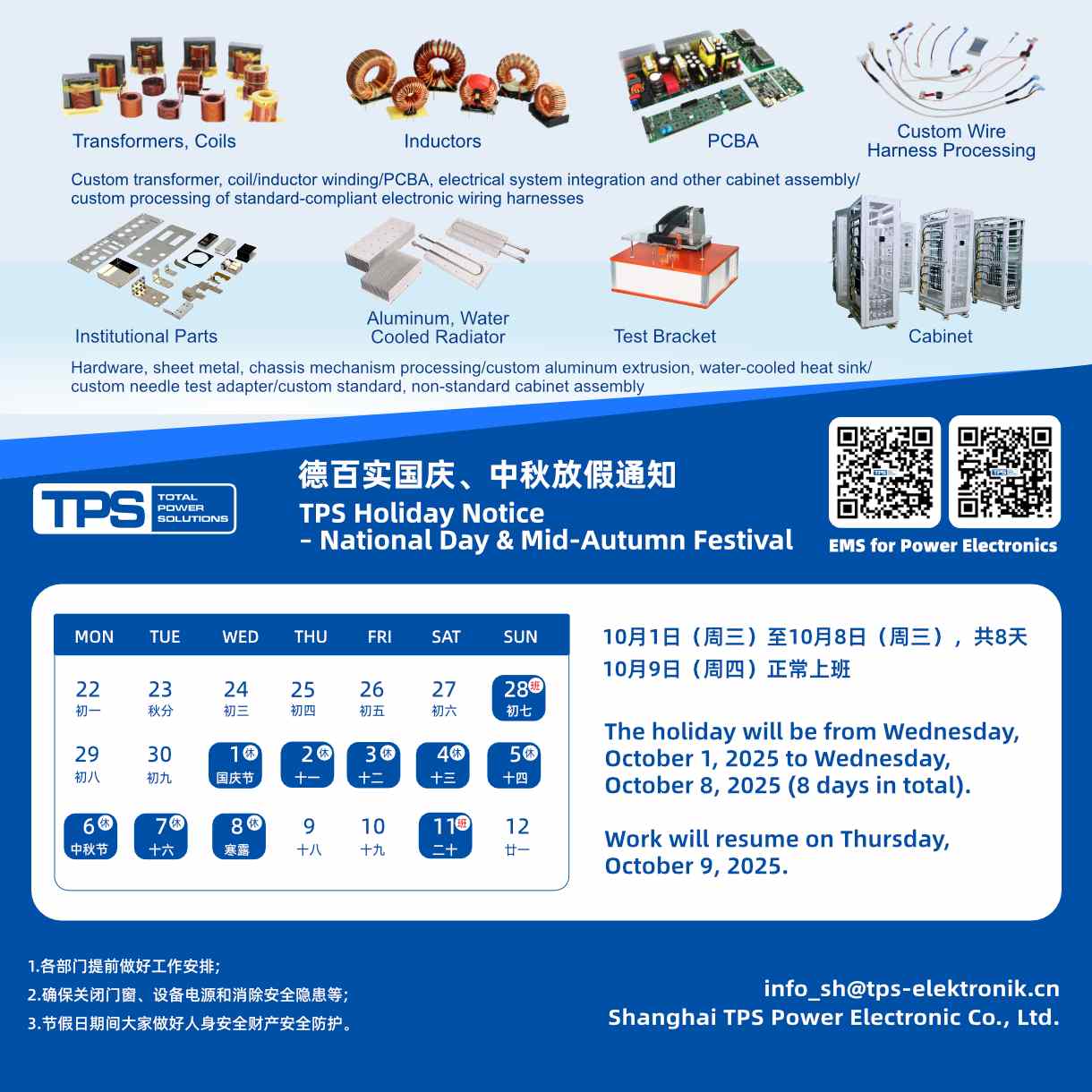 电感变压器部门,制作带或不带灌封的卷绕电感器,满足UL三种不同的热等级要求;