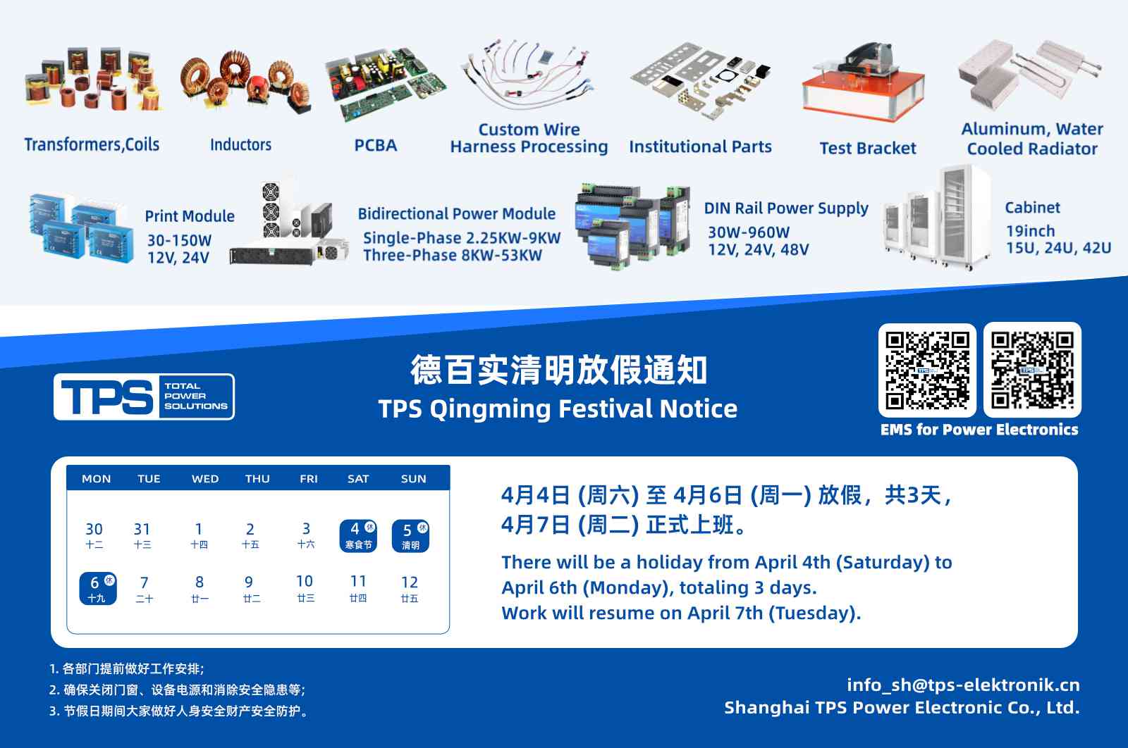 TPS德百实清明放假通知