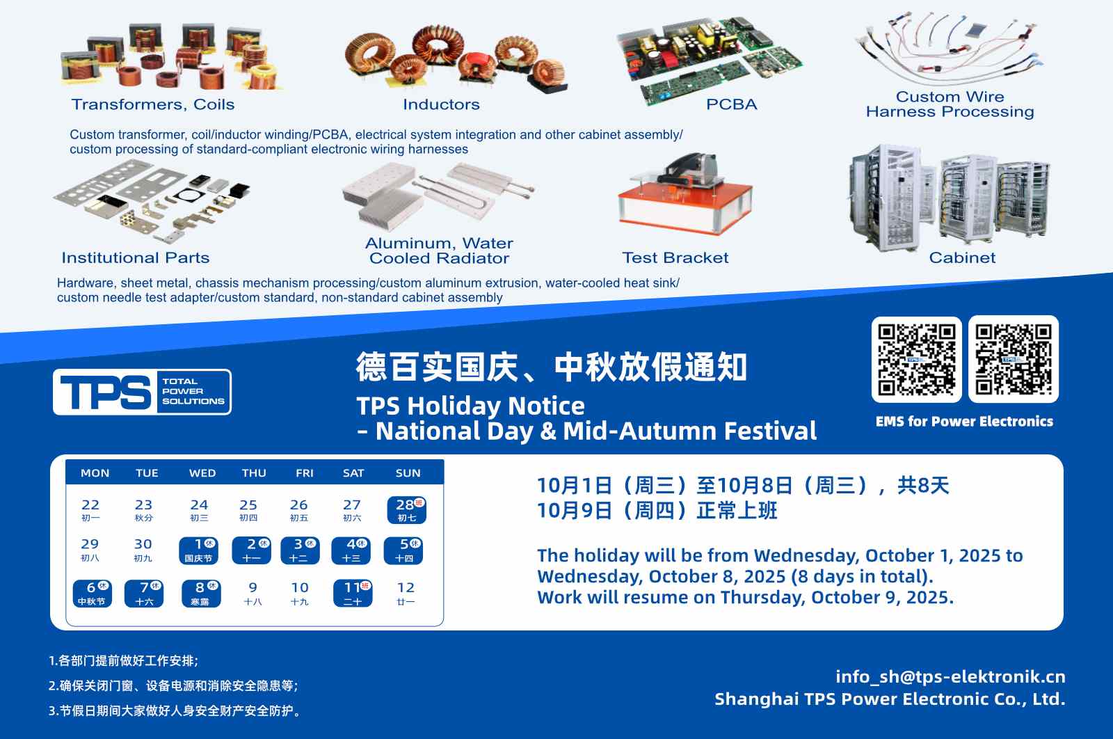 TPS Holiday Notice – National Day & Mid-Autumn Festival