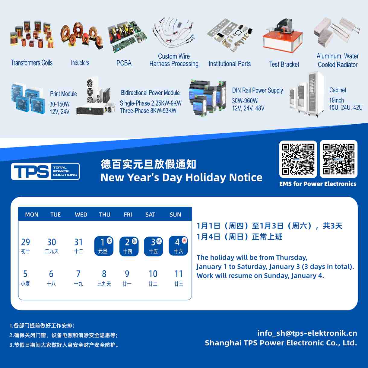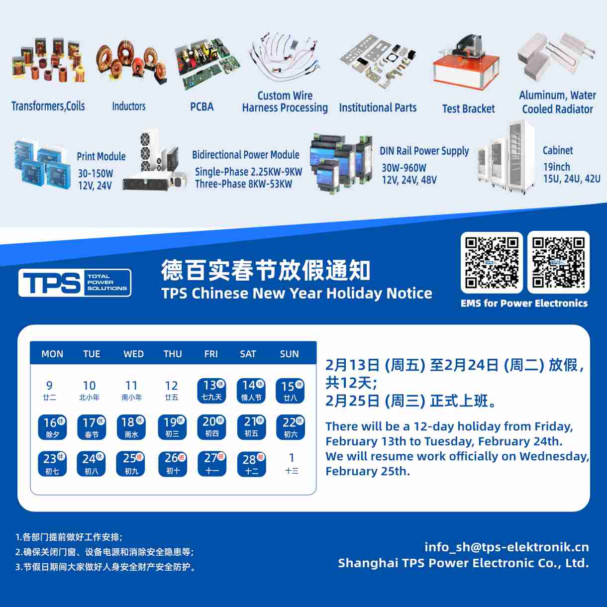 •  In 2005, we established our production facility in Shanghai, China. Shanghai TPS has obtained multiple certifications, including ISO9001:2015, UL certification, the automotive industry quality management standard IATF16949:2016, the medical device quality management system ISO13485:2016, the intellectual property management system GBT29490-2013, the environmental management system ISO14001:2015, and the occupational health and safety management system ISO45001:2018.